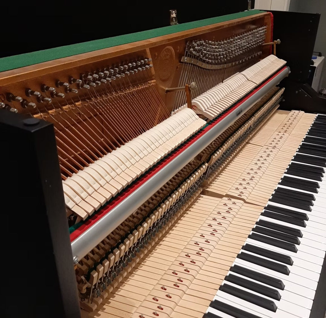 A completely restored, reconditioned, and partially rebuilt upright piano by master craftsman Tim Jackson (Dip. CGLI) of Comeragh Pianos, Kilrossanty, County Waterford.