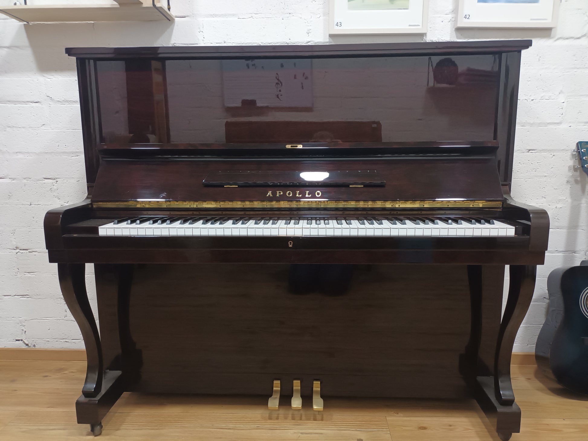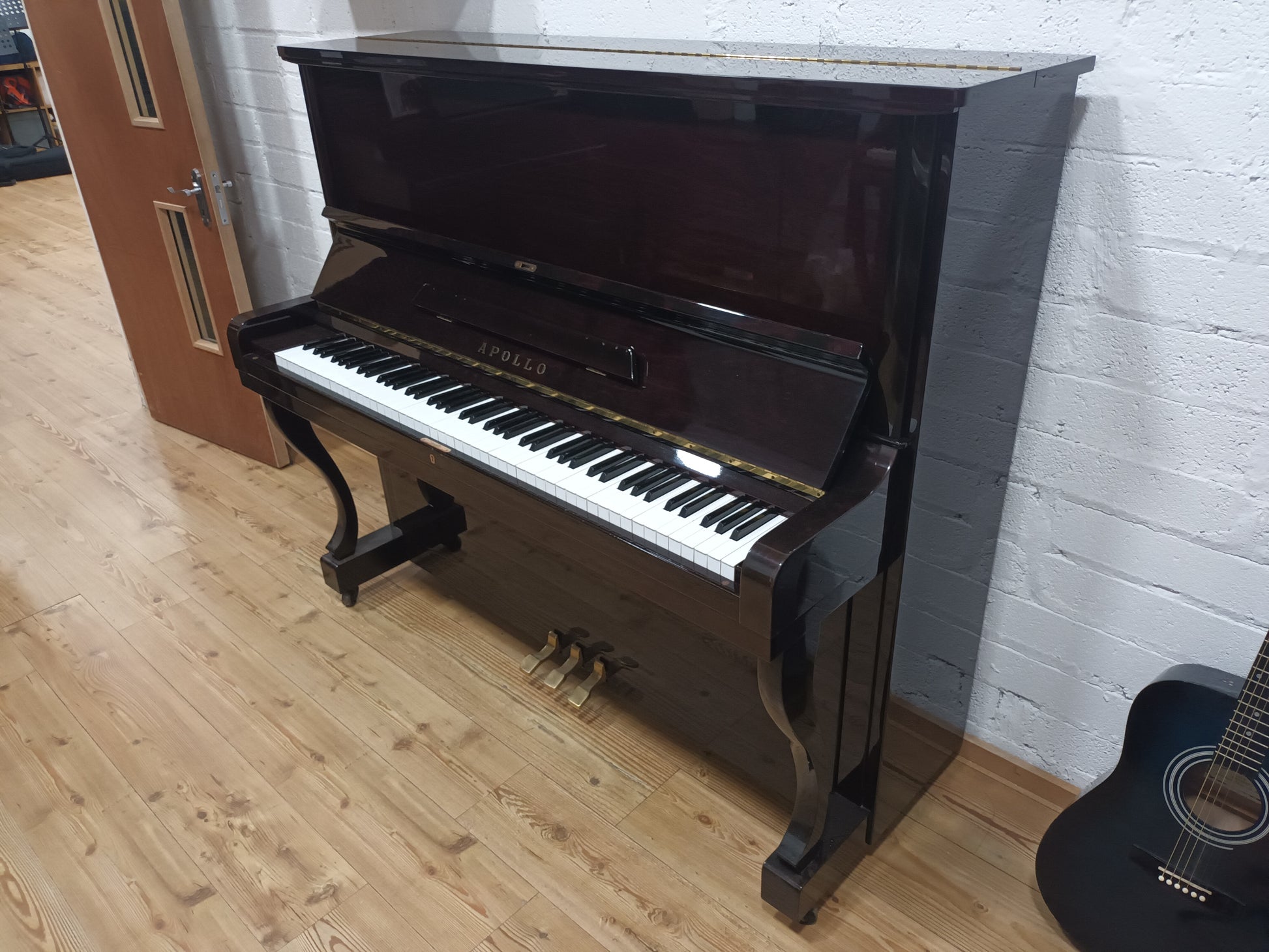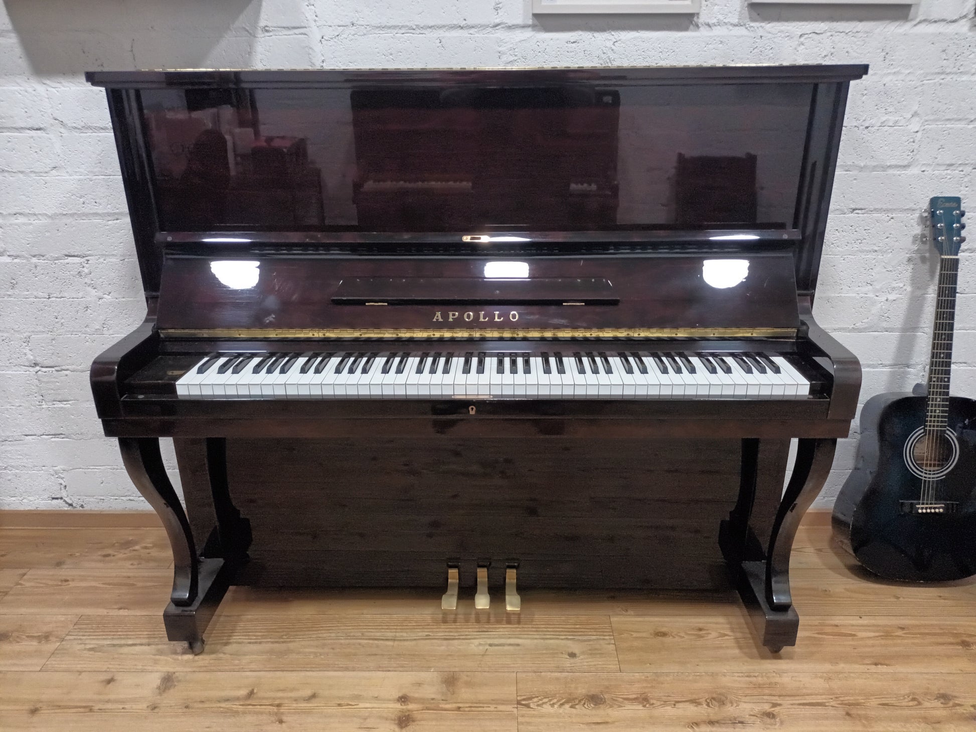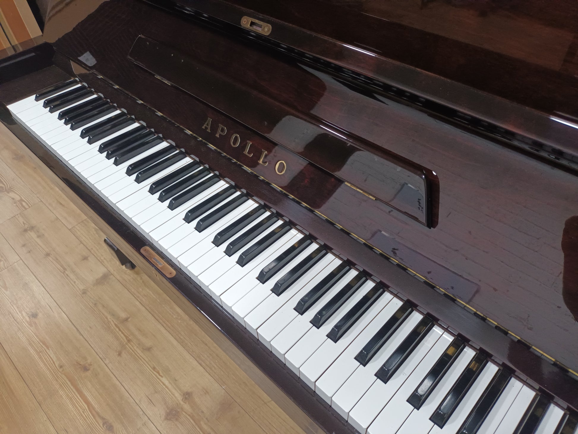 Quality Japanese built 1988 Apollo acoustic piano with beautiful restored cabinet, perfect keys, and responsive medium touch. A nice instrument to play with a full rounded tone and ideal for learning the grades on.