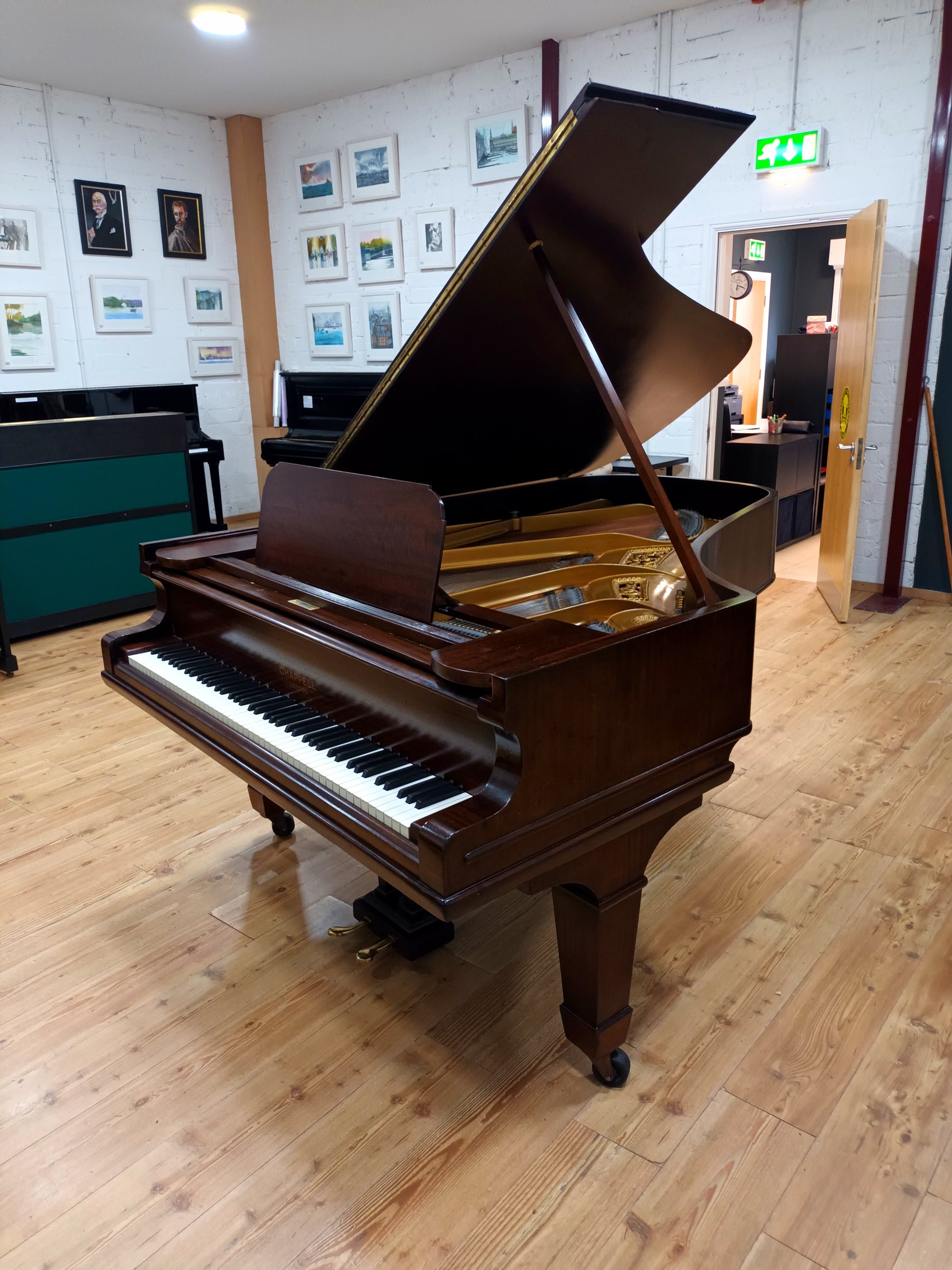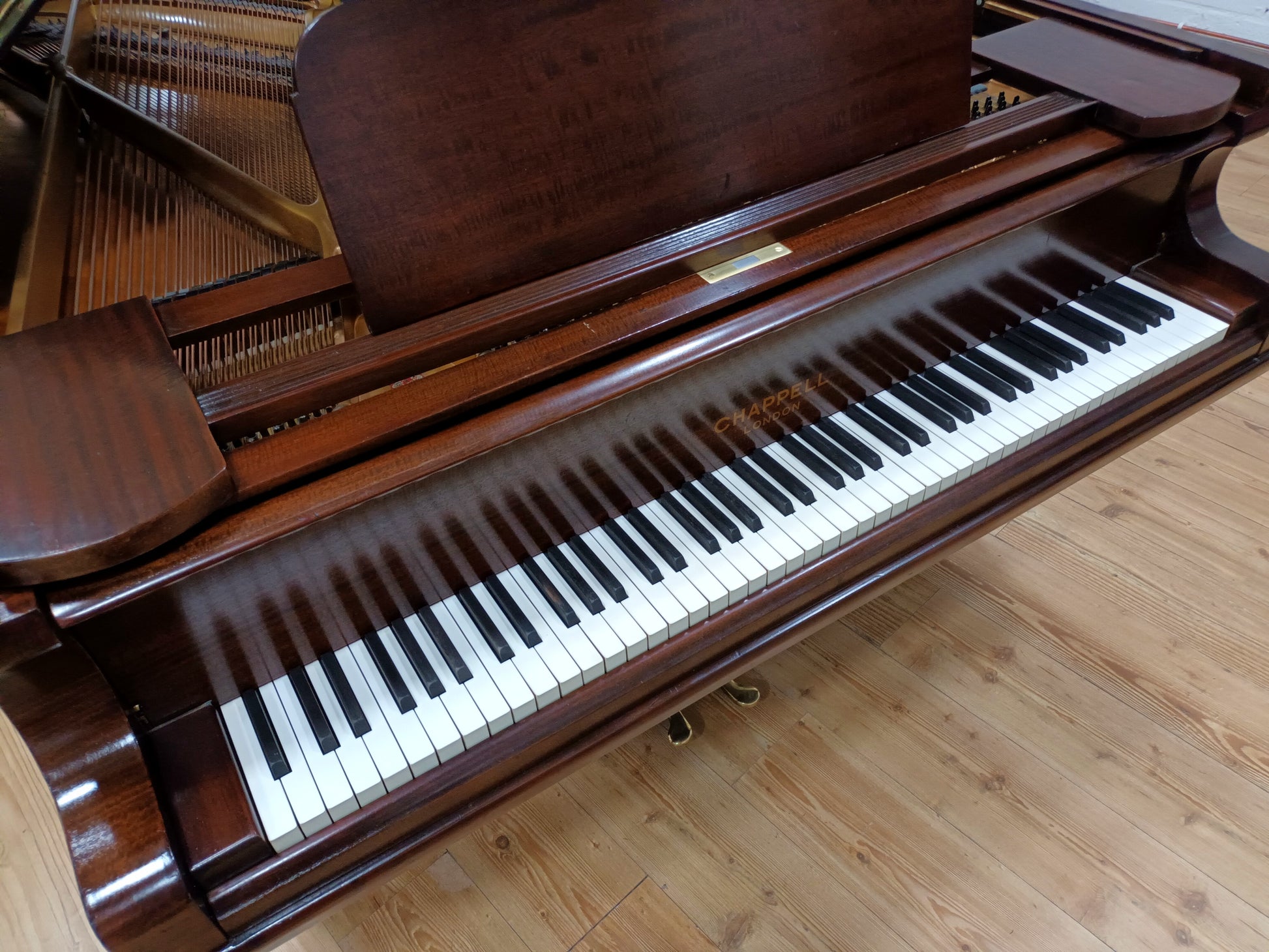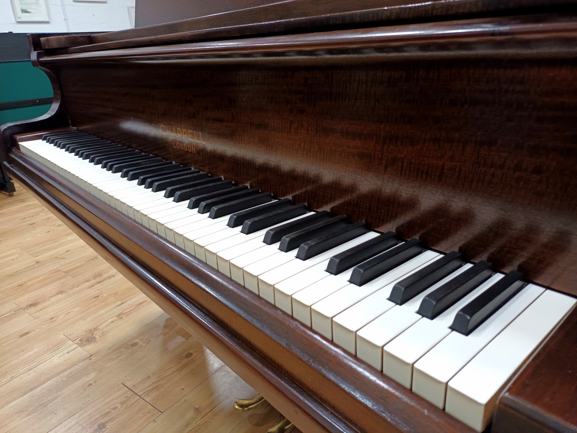 In 2020 O'Briain Pianos imported this Chappell Semi-Concert grand from London and thoroughly restored the Fiddleback Mahogany cabinet which is French Polished by hand.