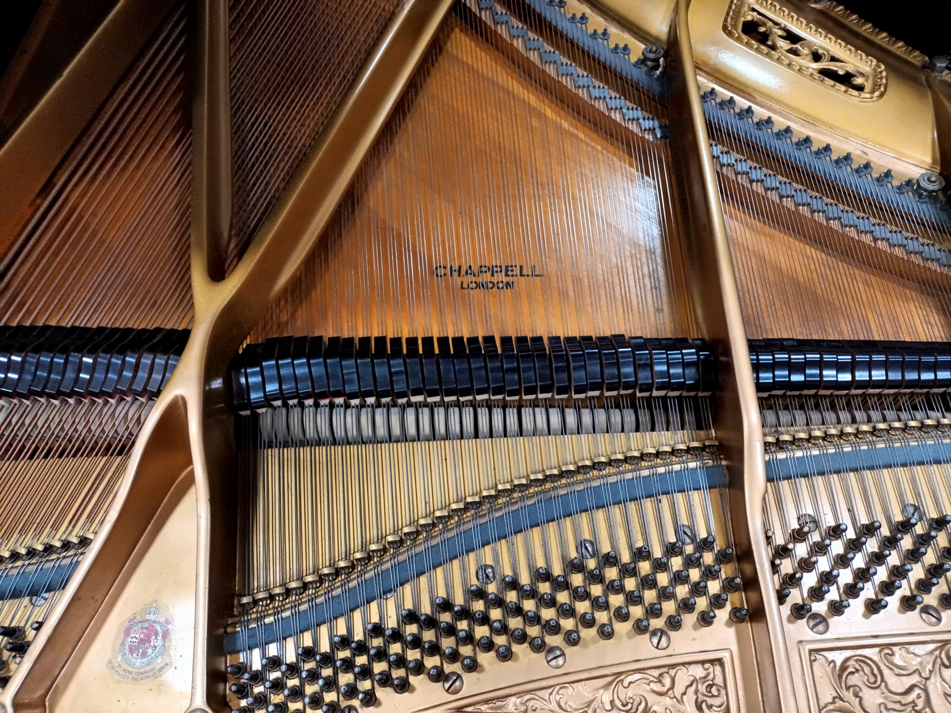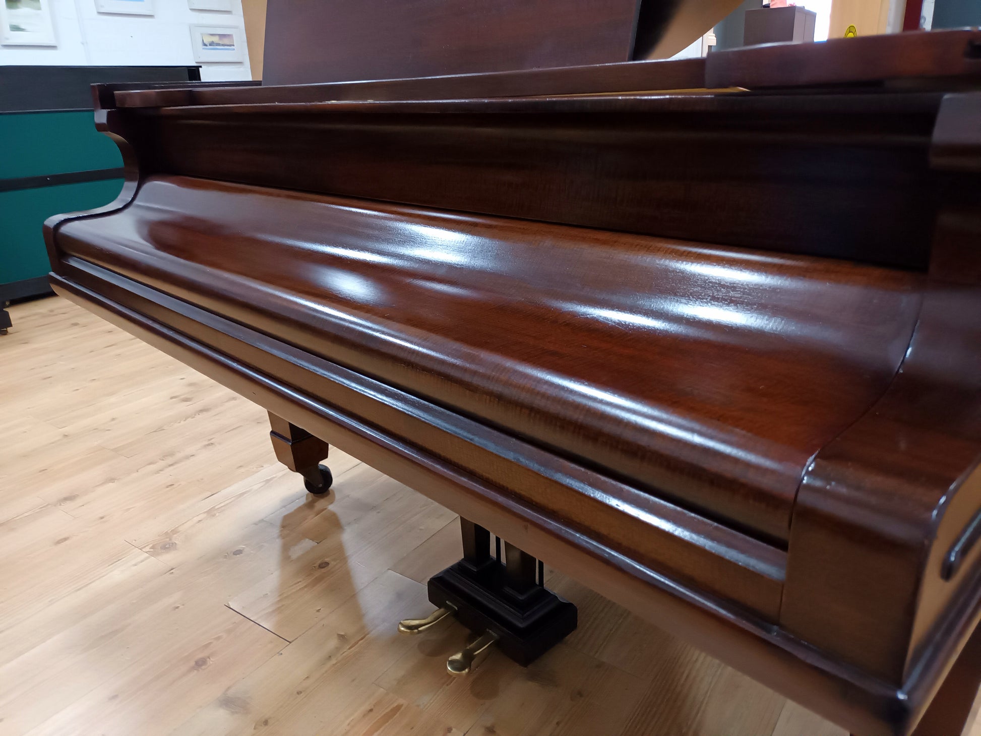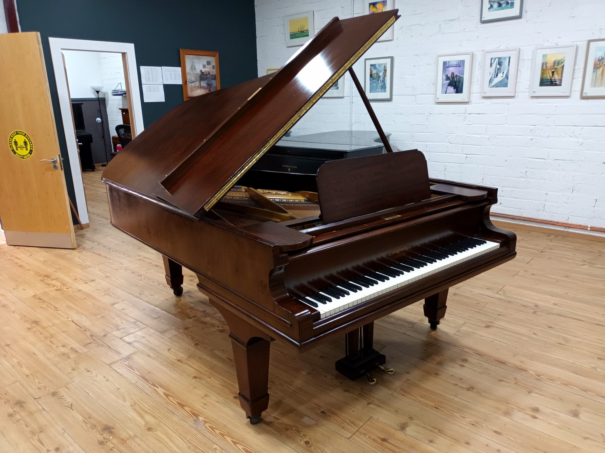 In 2020 O'Briain Pianos imported this Chappell Semi-Concert grand from London and thoroughly restored the Fiddleback Mahogany cabinet which is French Polished by hand.