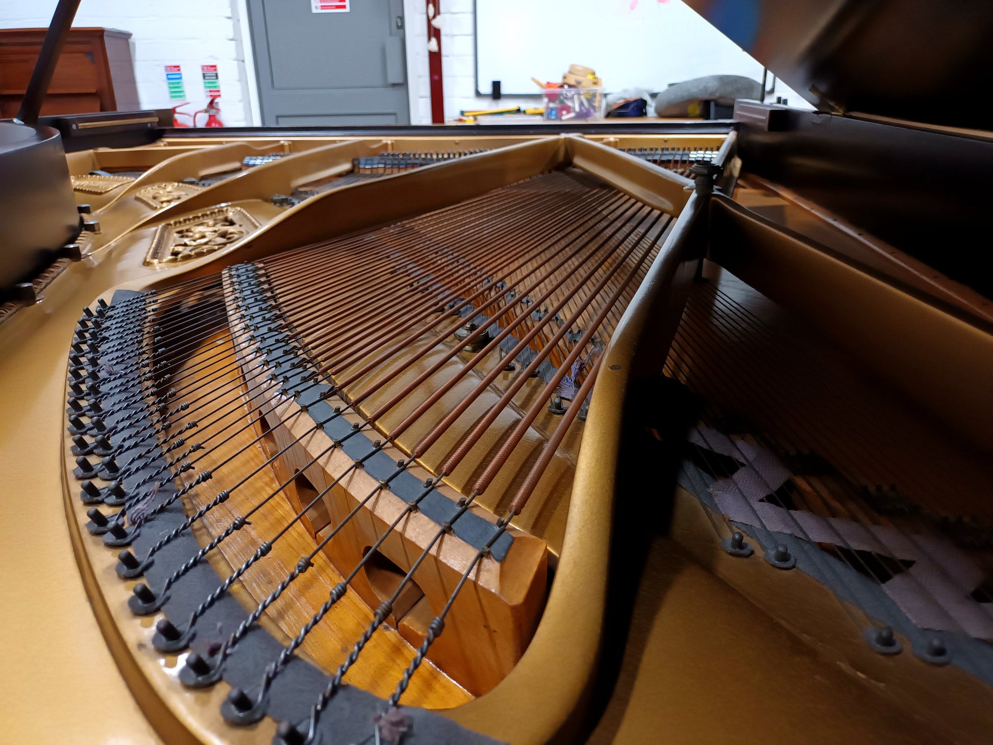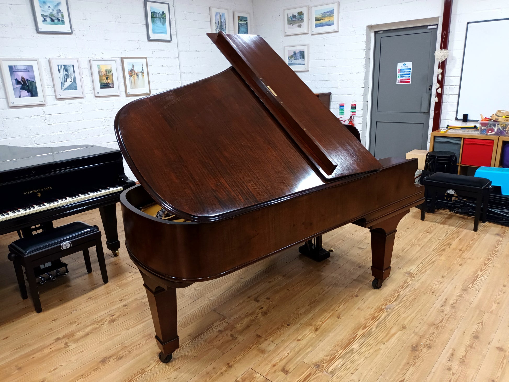 The piano is by a top British manufacturer with a reputation for building high quality instruments for professional piano players. Due to its long strings and large soundboard it possesses a clear, rounded, full and even pure tone, with a responsive keyboard and internal action.