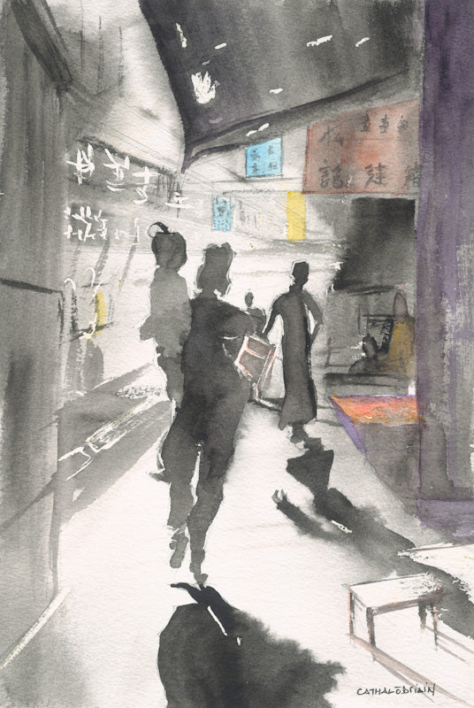 A3 size Fine Art Print from Watercolour painting by Cathal O'Briain. Painting was from a photograph by Fan Ho.