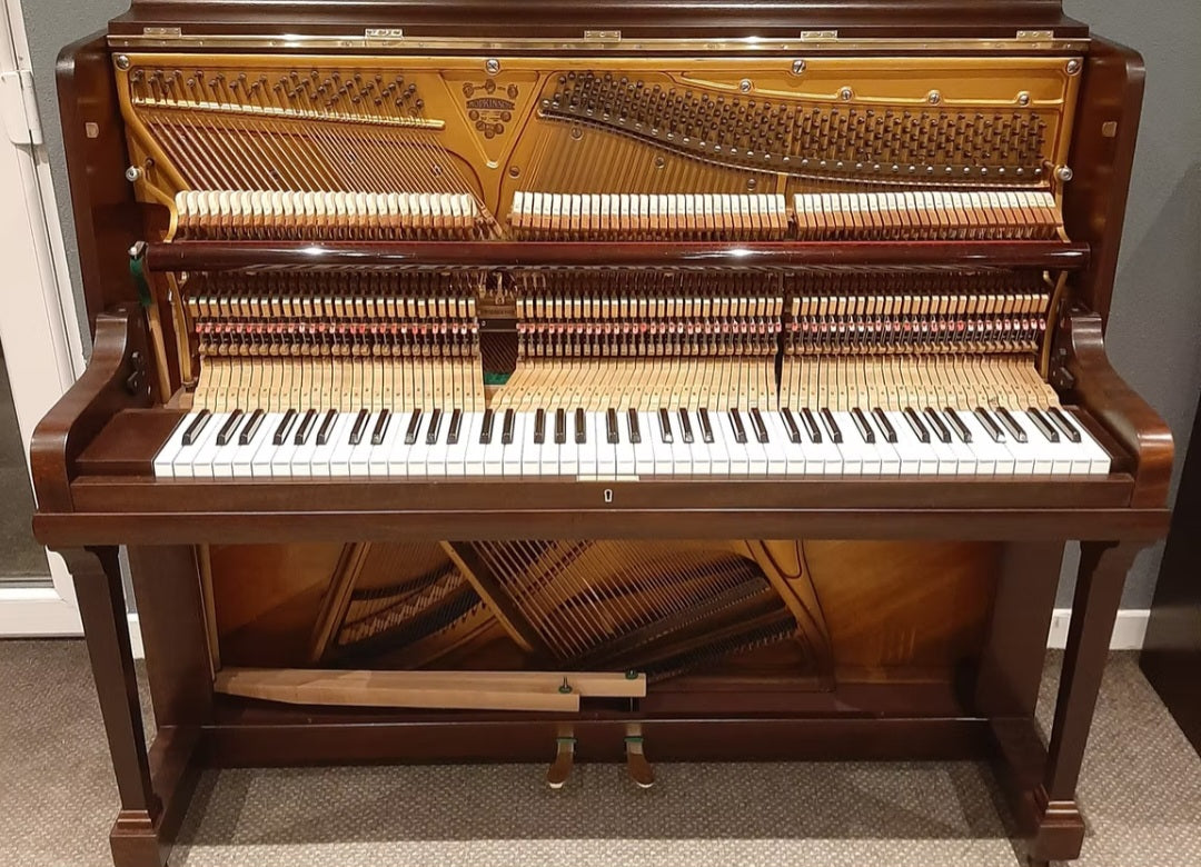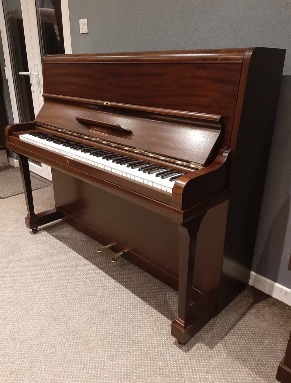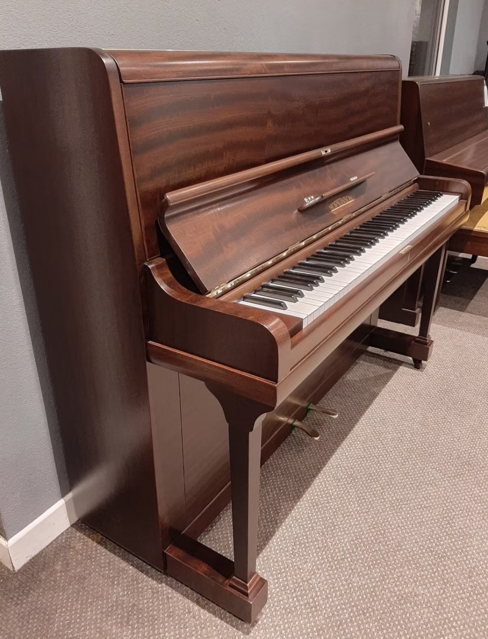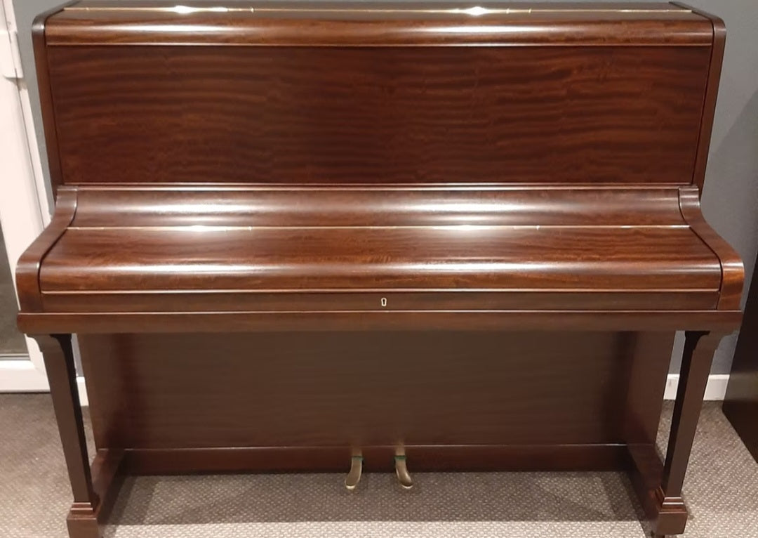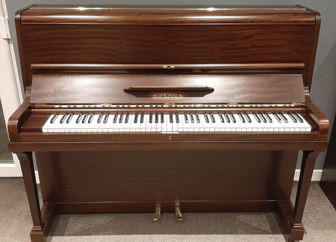 Founded in 1846, John & James Hopkinson went on to be one of the largest manufacturers of pianos in the late 19th century. This fully restored to brand new standard piano from 1940 has a lovely style, with the legs giving it more of a traditional look than many other pianos of that era. It is presented in a fiddle back mahogany cabinet which has been repolished.