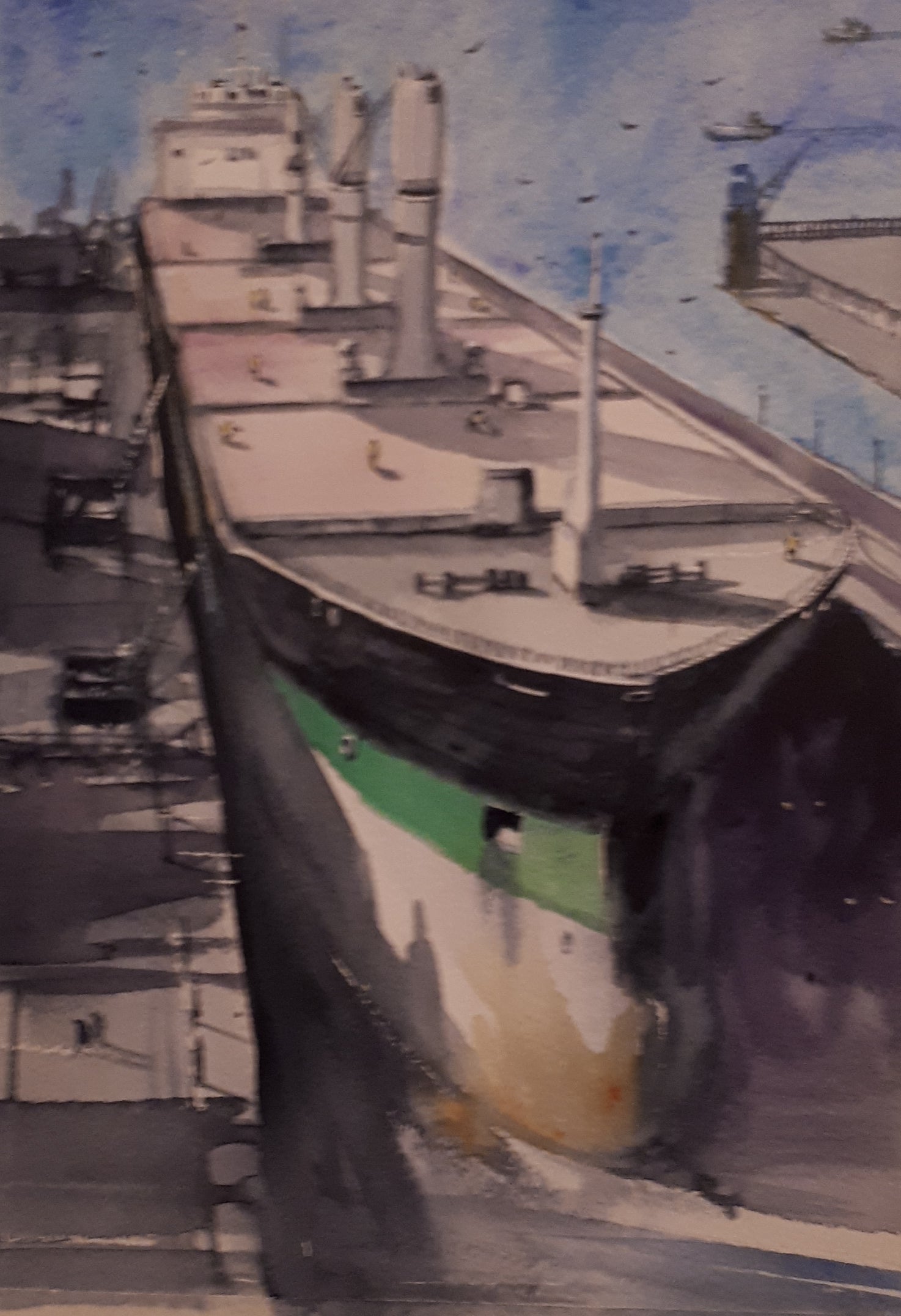 A3 size original Watercolour painting of ship in dry dock, by Cathal O'Briain.