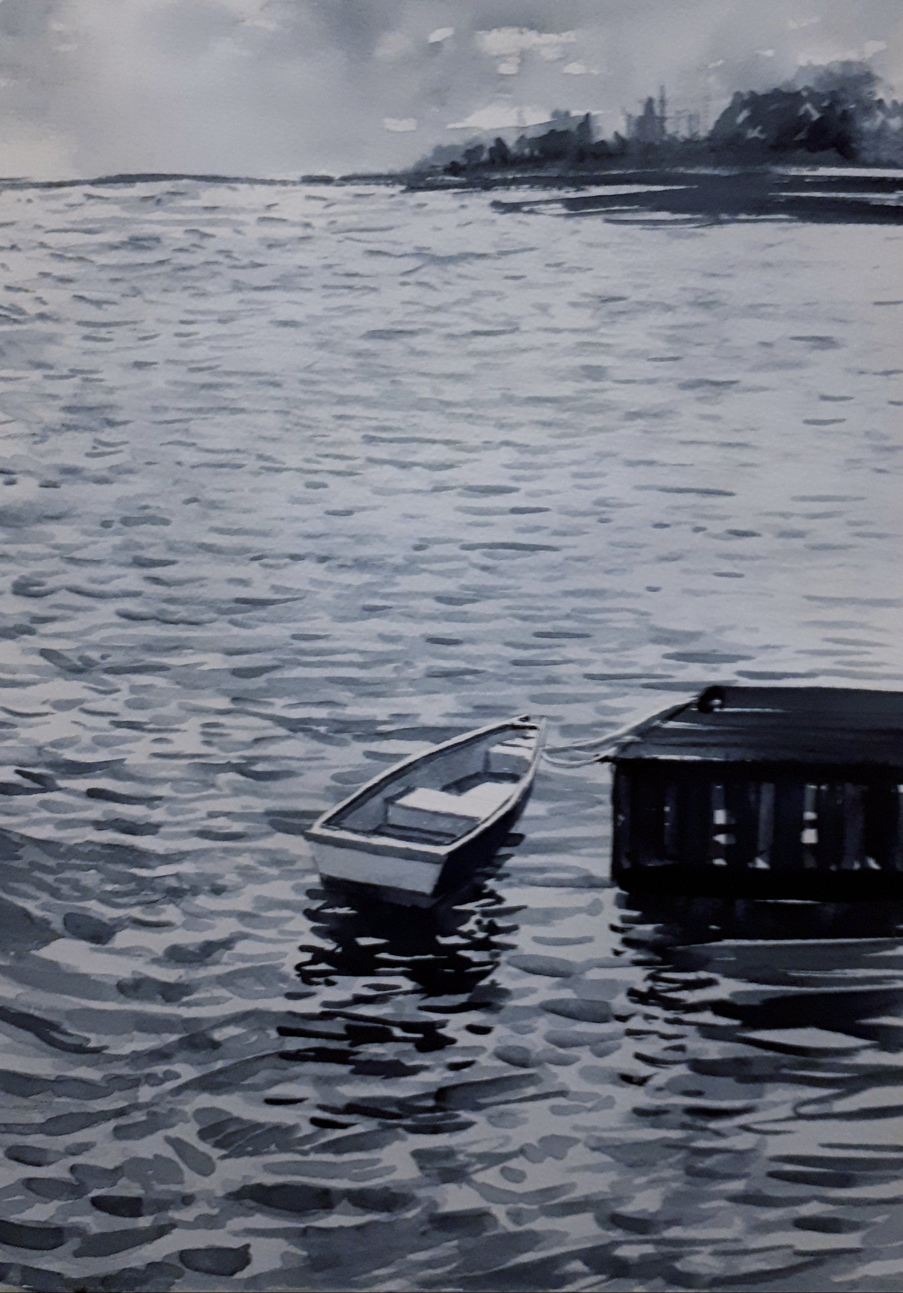 A3 Framed Original Watercolour painting of Blessington, Wicklow, by Cathal O'Briain using only one colour (Payne's Gray).