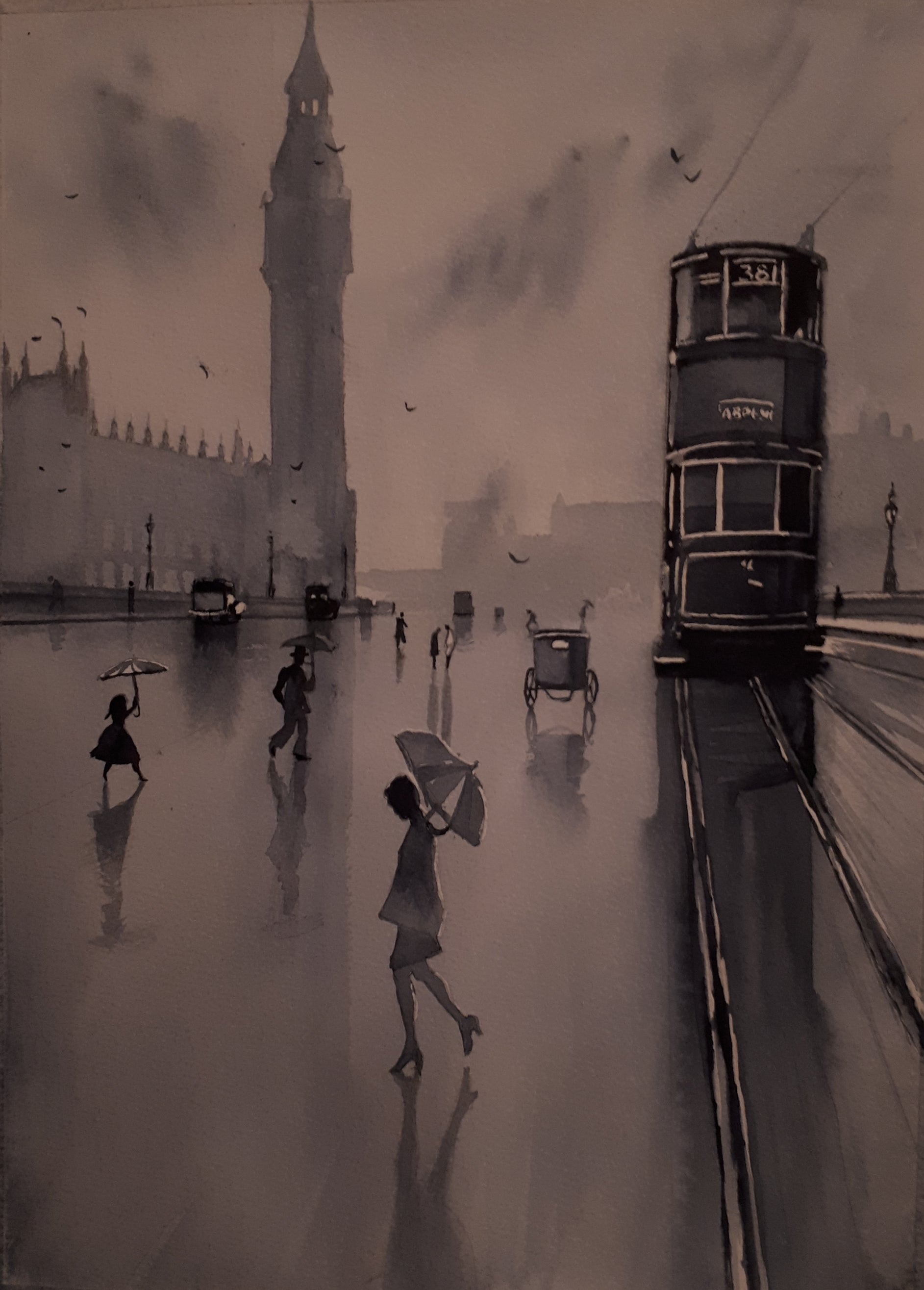 A3 size original Watercolour Painting of old London using only one colour, by Cathal O'Briain.