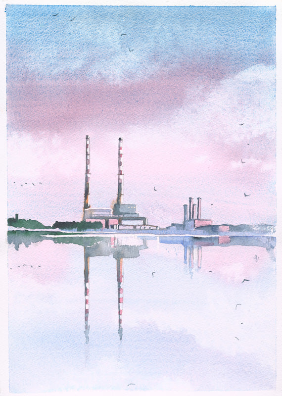 A3 size Fine Art Print of the Poolbeg Stacks, Dublin, Ireland, by Cathal O'Briain.