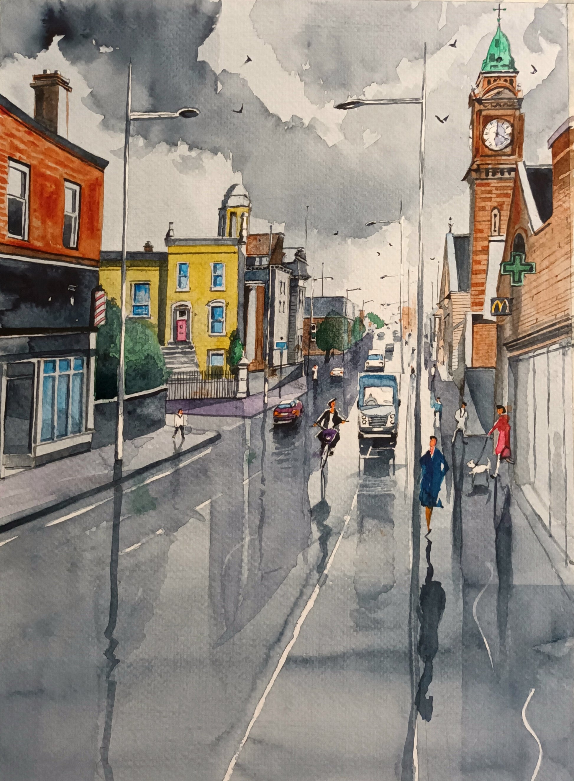 A3 size original Watercolour painting of Rathmines, Dublin, by Cathal O'Briain.