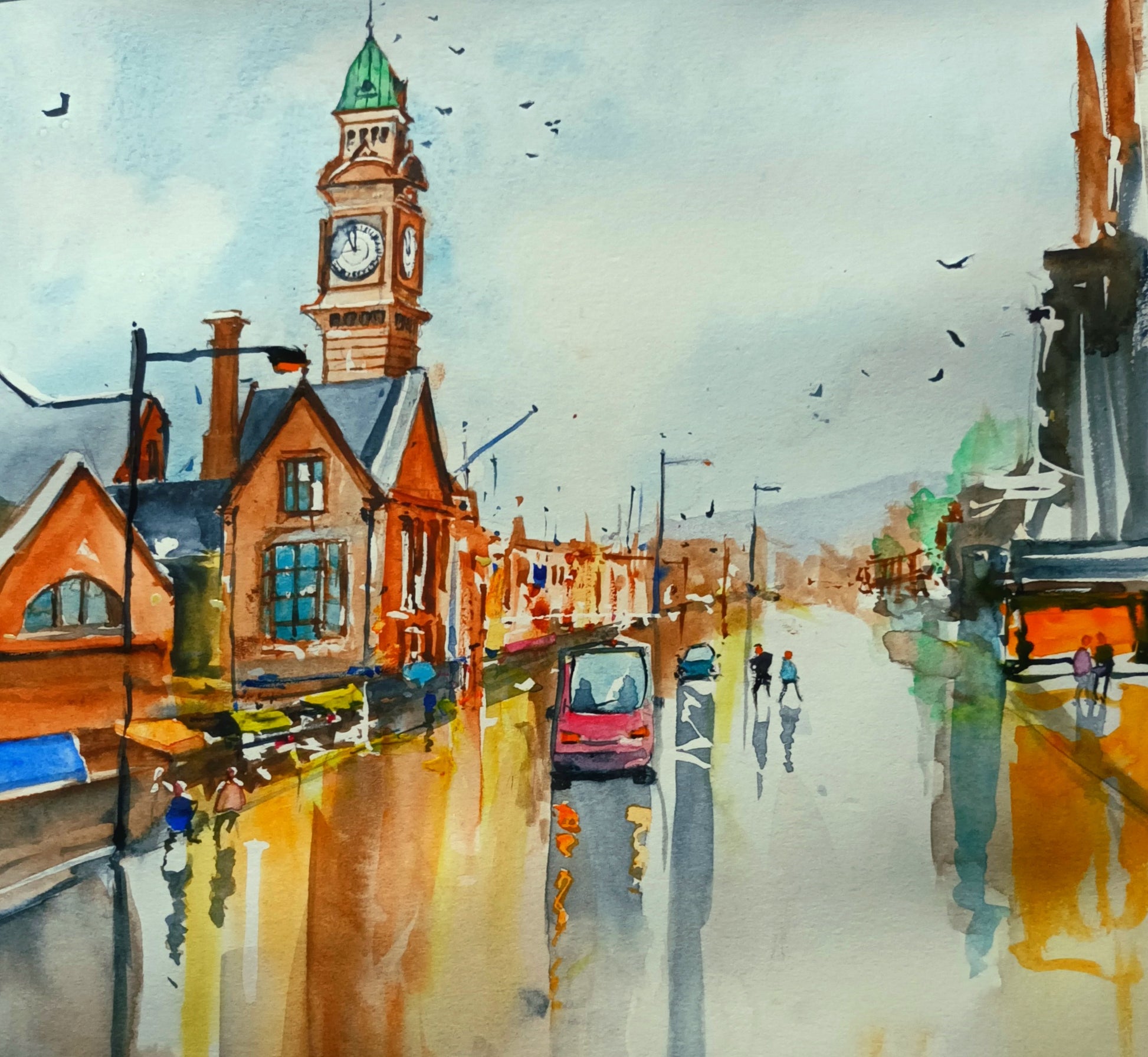 A3 size original Watercolour painting of Rathmines, Dublin, by Cathal O'Briain.