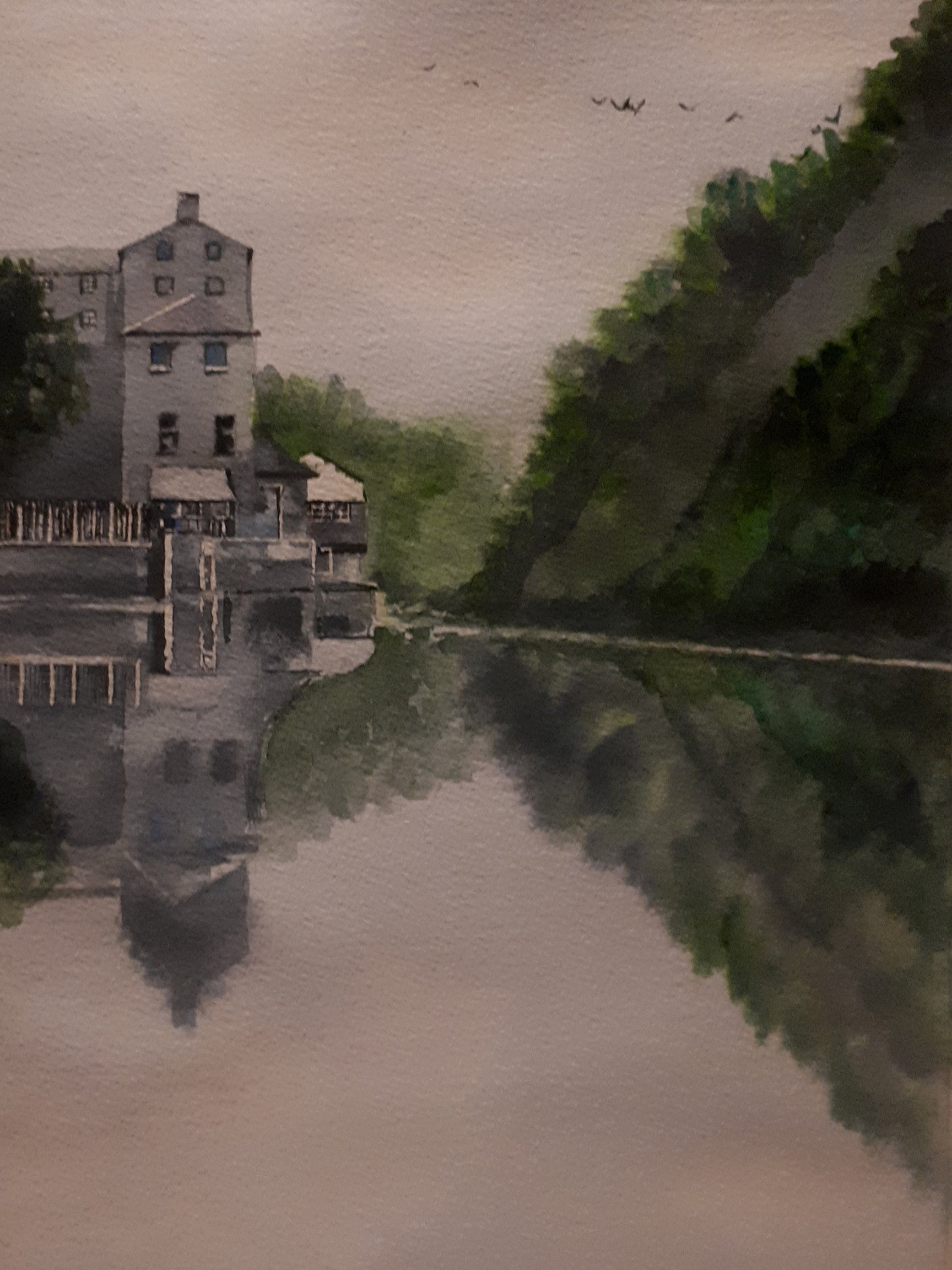 Original Watercolour painting of Shackleton Mill (Anna Liffey Mill), Lucan, Dublin, Ireland, by Cathal O'Briain.