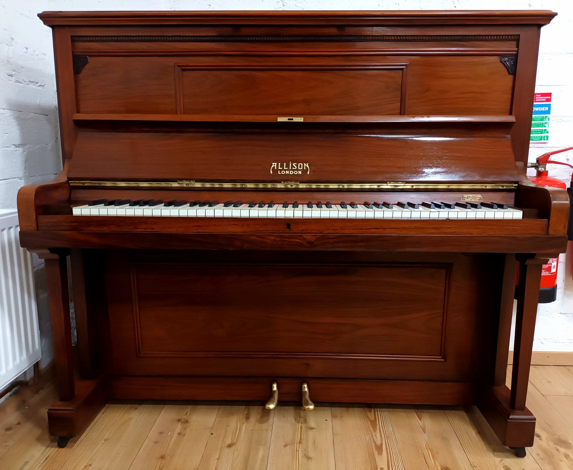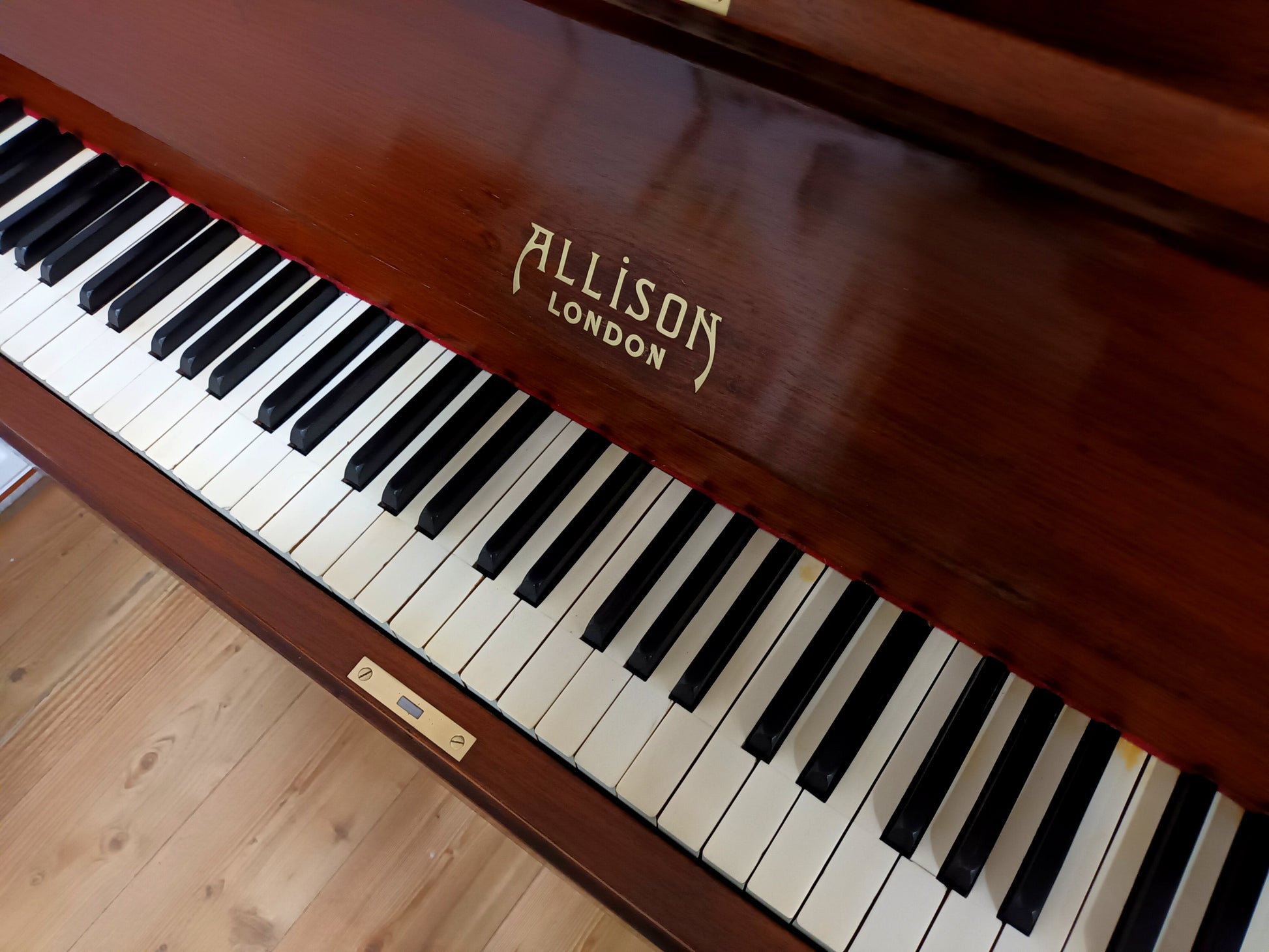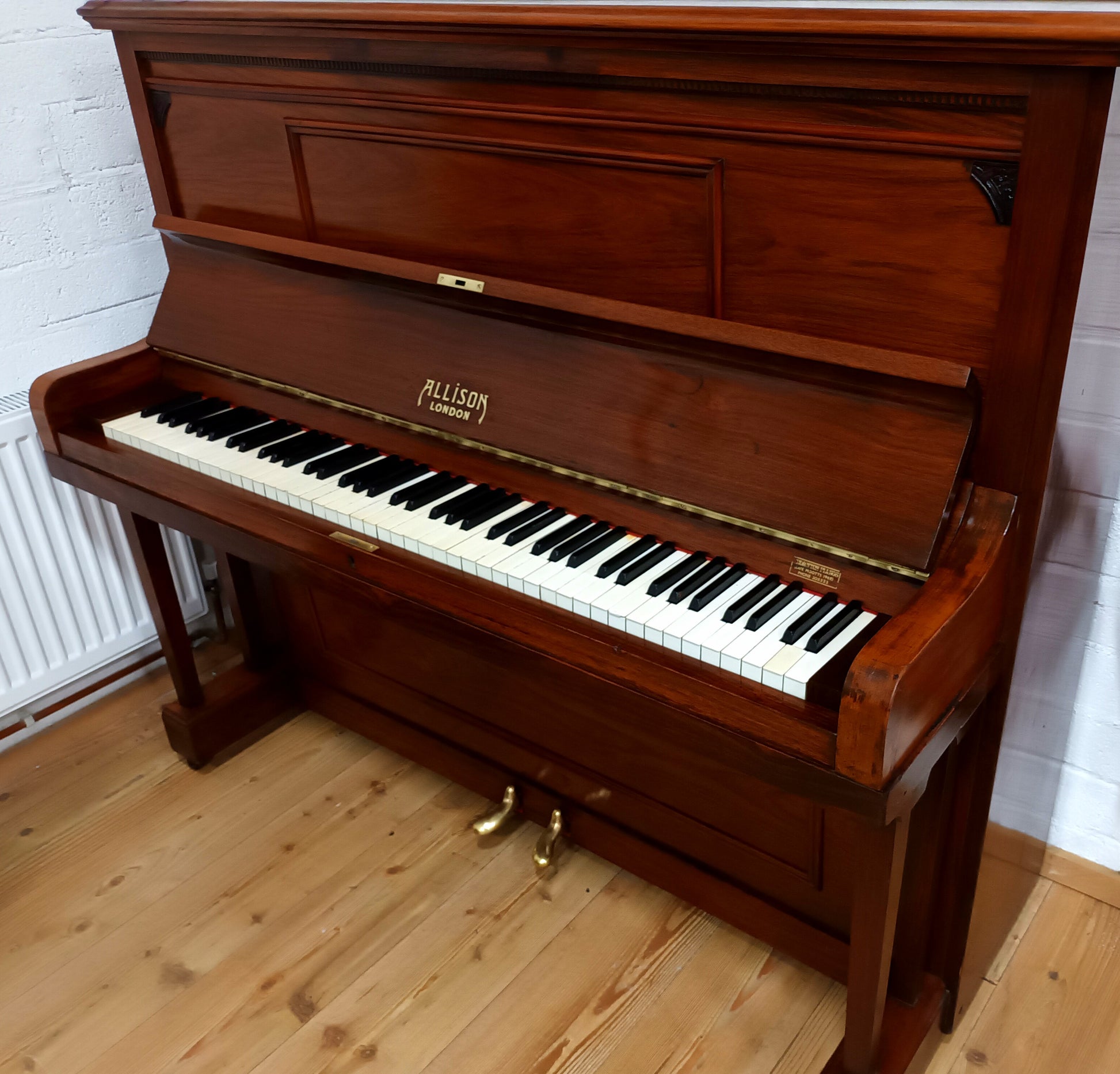 The cabinet overall is in good condition considering the piano was built in 1924. There is some minor wear and tear commensurate with age (Top Lid) but nothing too significant. Allison are respected piano builders from London and due to its configuration, overstrung/underdamped, it has long strings, a large soundboard, and good depth of tone throughout.