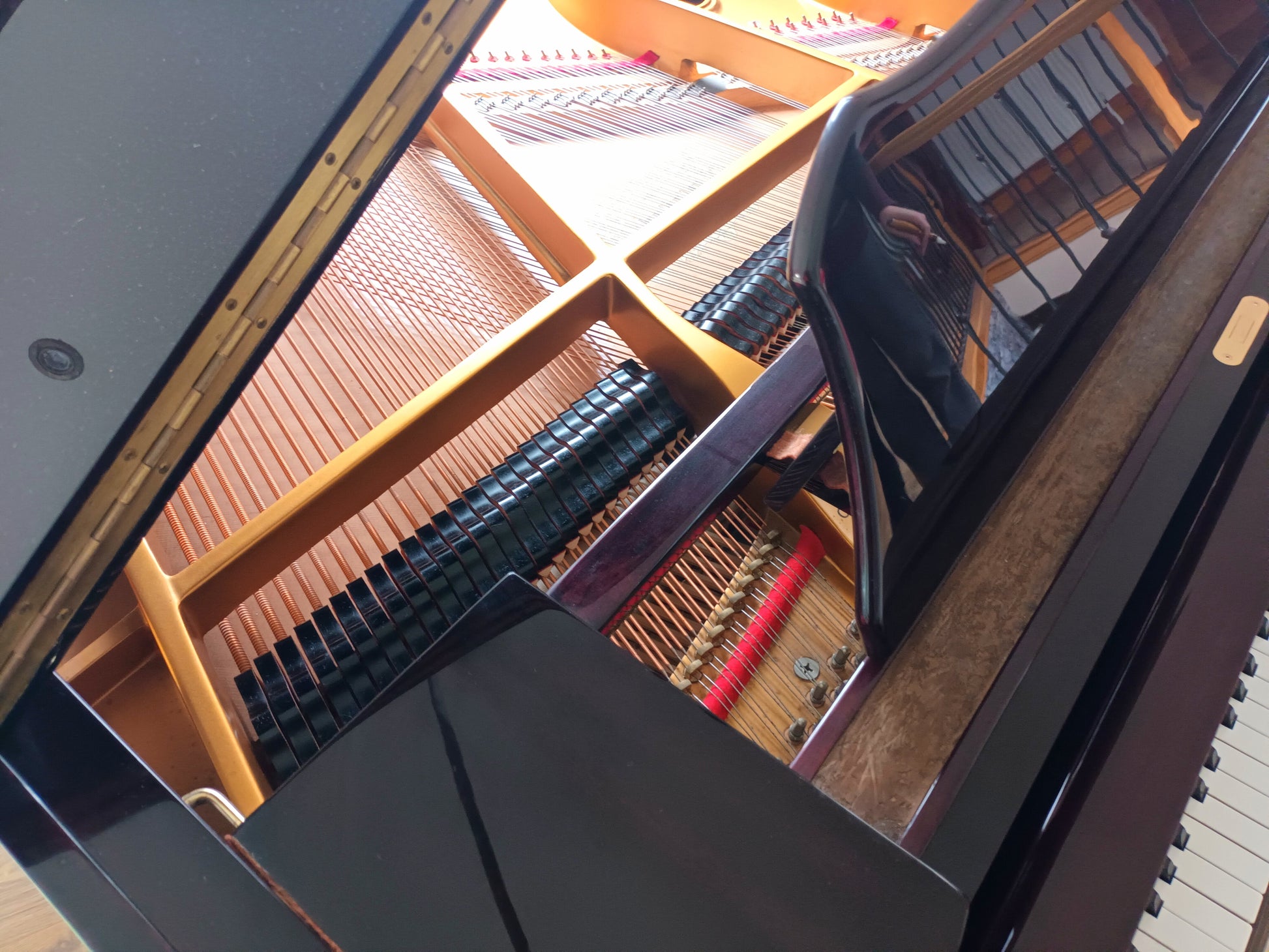 This piano was built in 1990 and has a beautiful case with no marks or scratches. When we were tuning, we also refinished the brass works, so the piano looks very well and is in great condition overall.