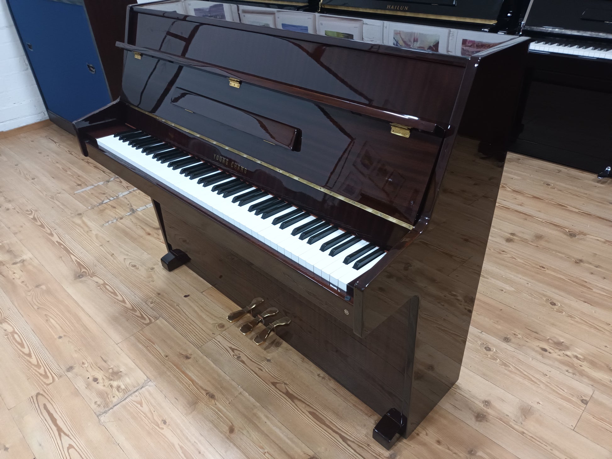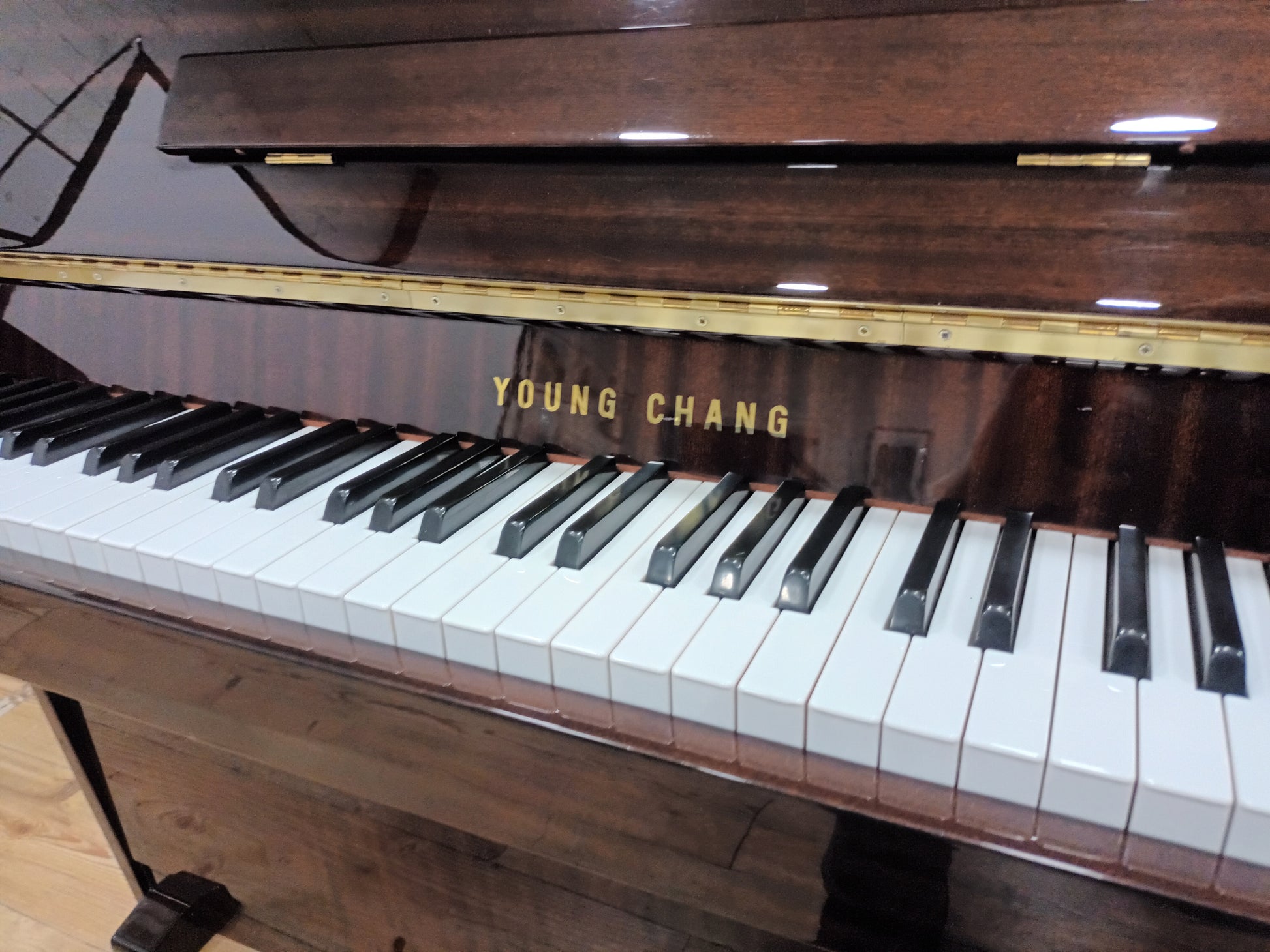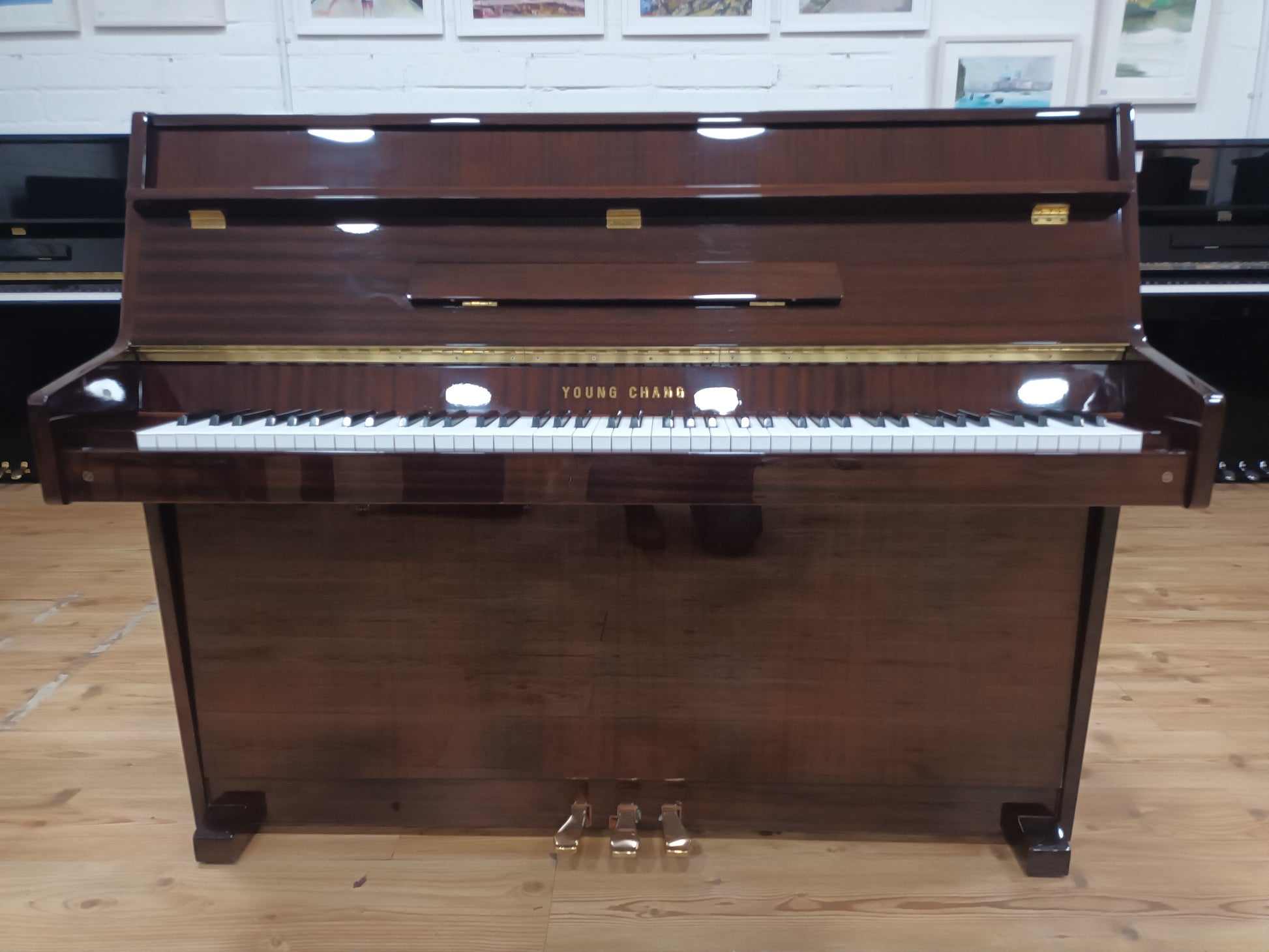 A compact high quality 1991 Young Chang, built in South Korea and in superb condition. There are virtually no signs of wear internally, as it was used lightly for learning piano and taken care off. The internal mechanism known as the action is like new. The piano was originally purchased in Precision Pianos, a very reputable dealership. We are selling the piano for its owner who had it regularly serviced. We have refinished the cabinet and brass trimmings, tuned it to Concert Pitch and the piano is ready to play. Young Chang are brilliant piano makers and this contemporary acoustic instrument is very similar to a Yamaha or Kawai in quality and tone.